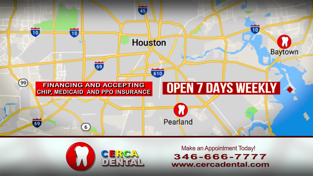 At Cerca Dental we strive to provide the best dental care experience for our patients that’s both affordable and quality. Our staff of professionals is highly trained in the latest dental practices and techniques to provide an easy experience for our patients. Our clean facility hosts states of the art equipment conveniently located in Pearland & Baytown Texas.